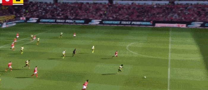 阿德耶米长途奔袭,与布兰特配合后轻松推射入网: